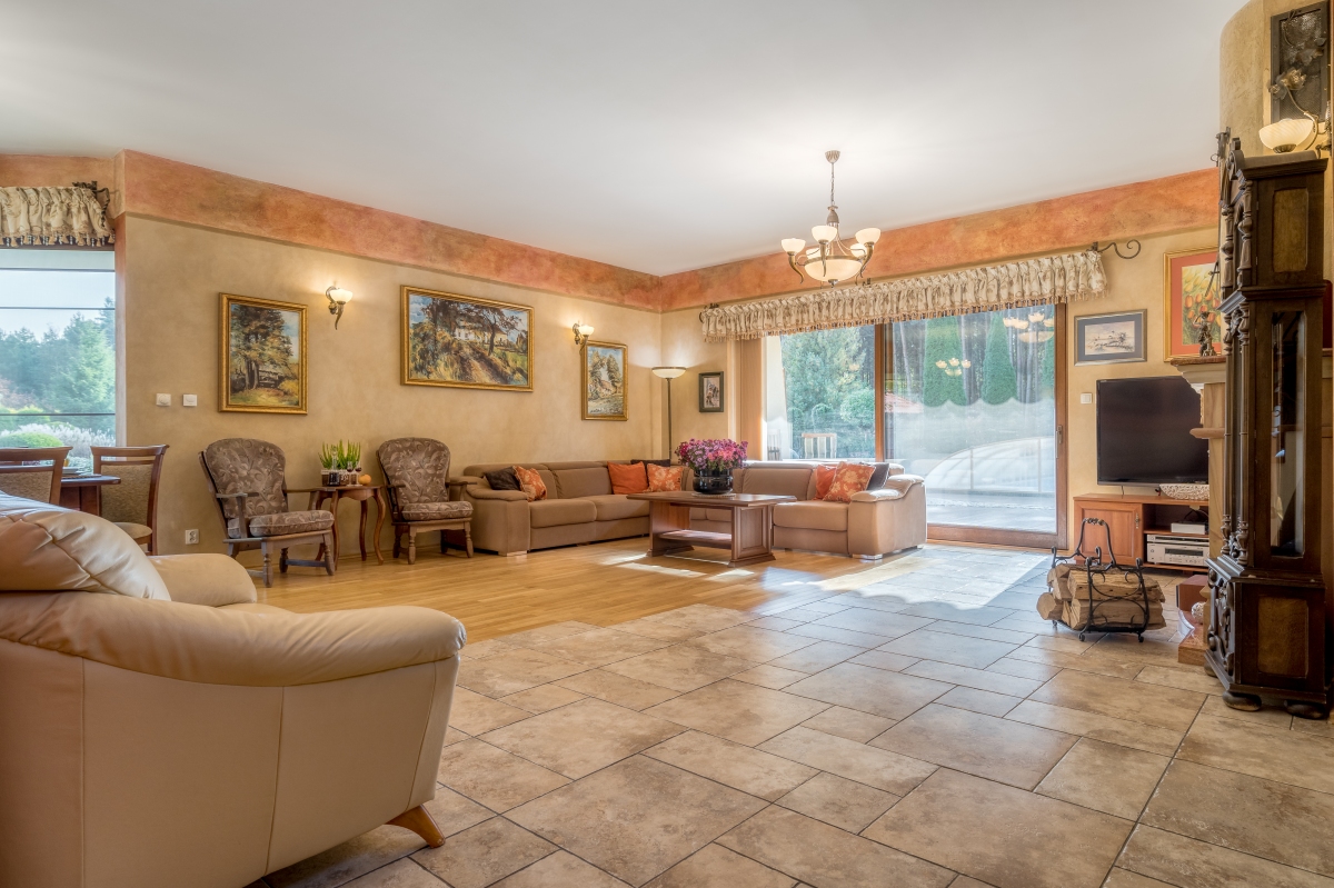 Przestronność domu, cisza i spokój otoczenia, mnóstwo zieleni oraz jego położenie w sercu lasu sprawia, że jest to wyjątkowa nieruchomość, która zaspokoi potrzeby nawet najbardziej wymagających.