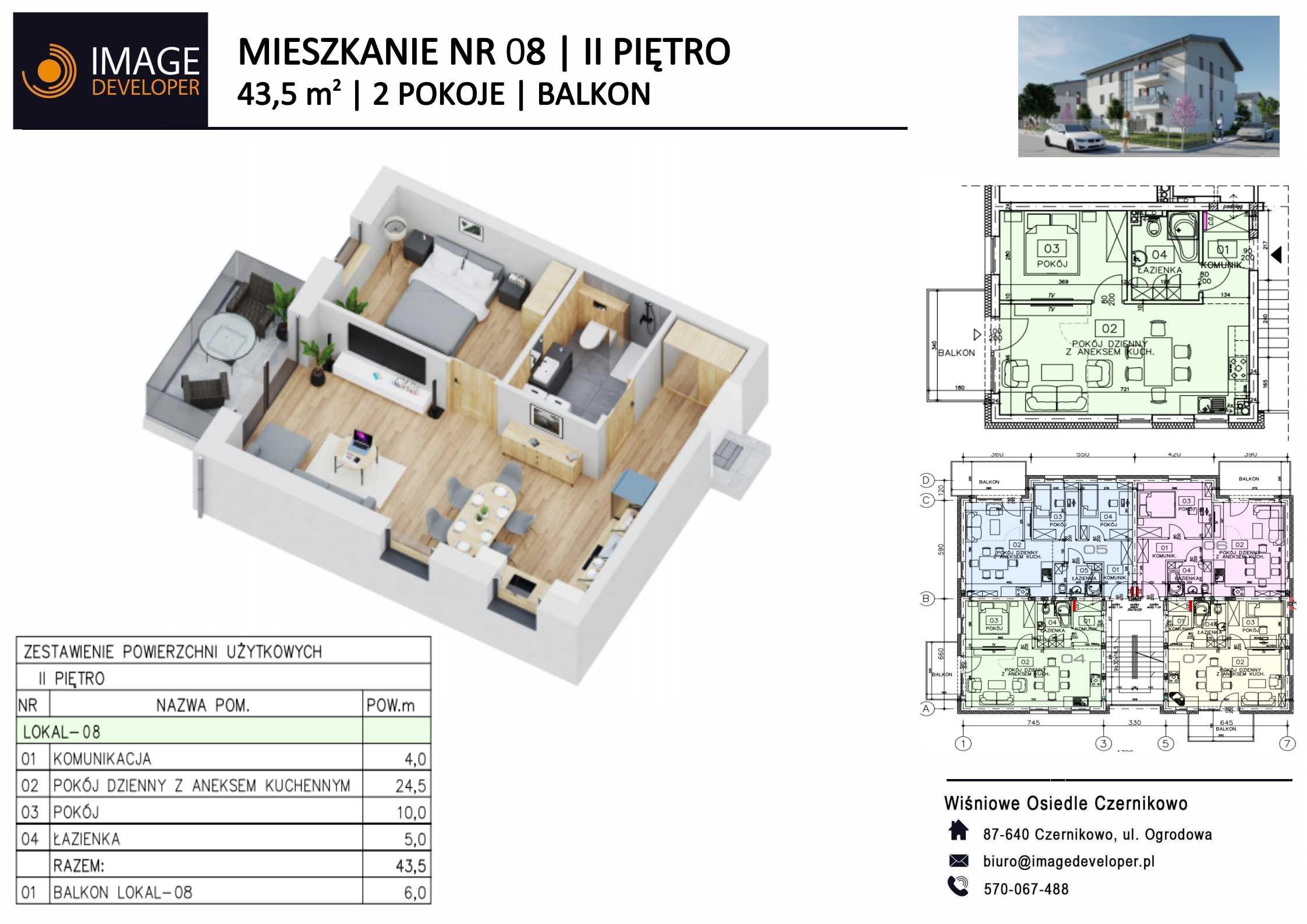 2-pokojowe mieszkanie z balkonem – 43,5 m² | II piętro | Wiśniowe Osiedle, Czernikowo